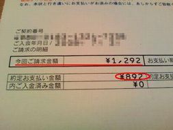 数日して届いた「お支払いのご案内」+振込用紙には、請求金額1,292円とある。
