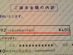 「振込用紙送付手数料」が、よんひゃ・・・高ッ!!